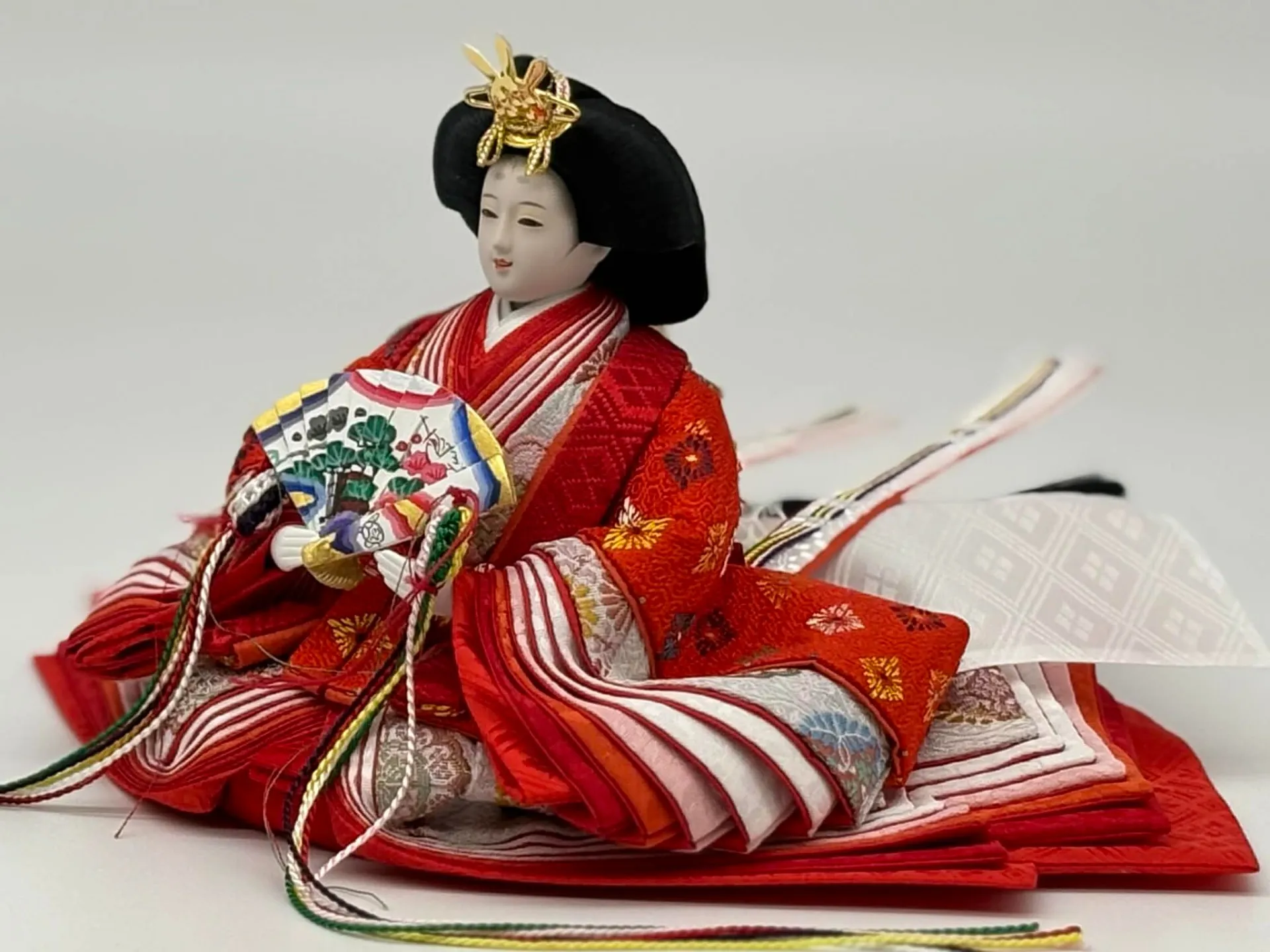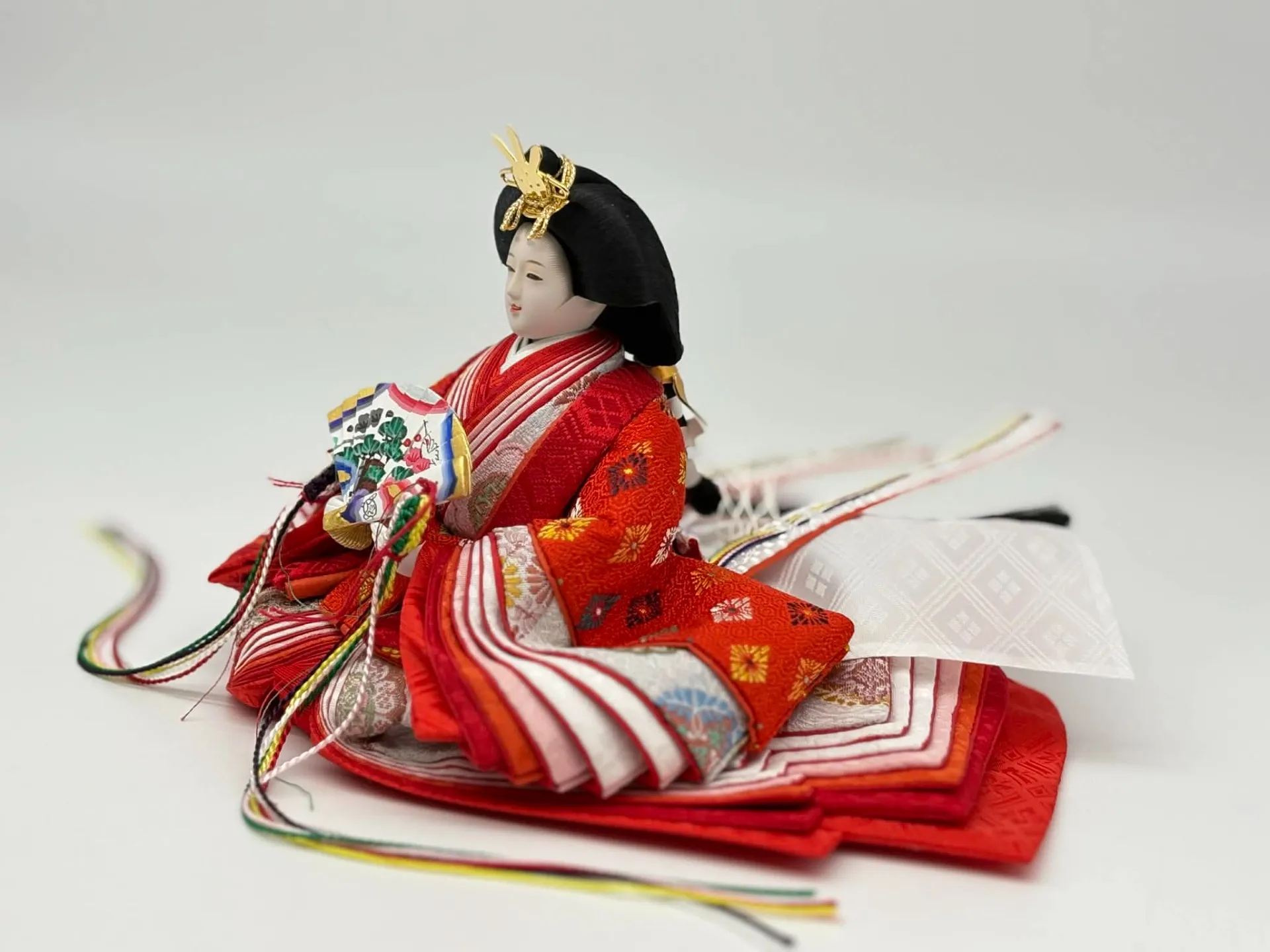特に注目すべきは、正絹の鮮やかな赤い衣裳や、お殿様の丸紋様を左右対称に配置する高度な技術です。これにより、古典的な美しさと現代のインテリアにも調和するデザインが実現されています。大量生産では味わえない温もりや存在感が、家族のひな祭りをより特別なものにしてくれます。