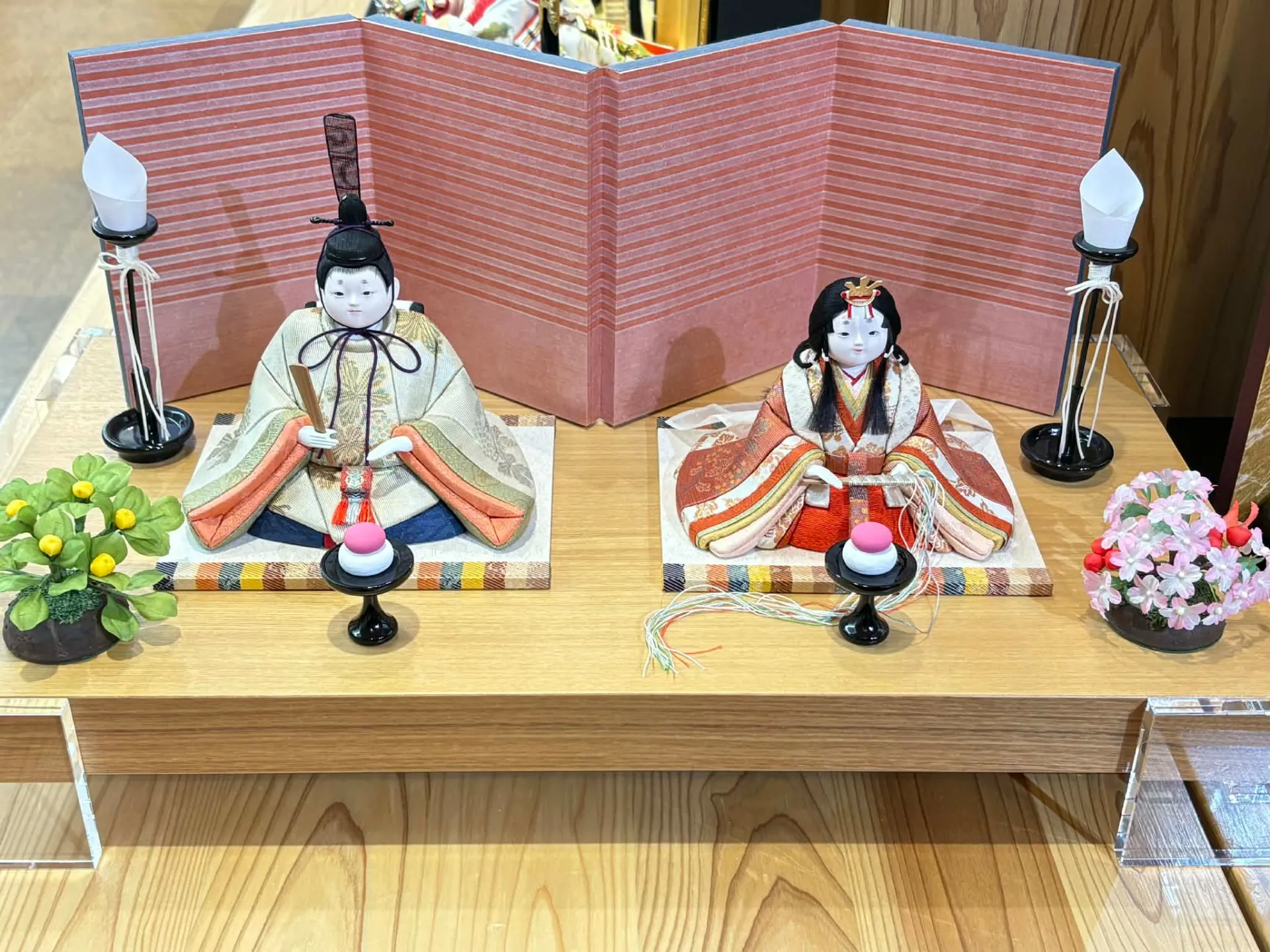 インテリアと合わせる際は、飾り台や屏風の素材感を意識することがポイントです。タモ材の台座や江戸唐紙の屏風は、木目や質感が際立ち、他の家具と並べても違和感がありません。アクリル足付きのデザインは、軽やかさを演出し、限られた空間でも圧迫感を与えずに飾ることができます。
