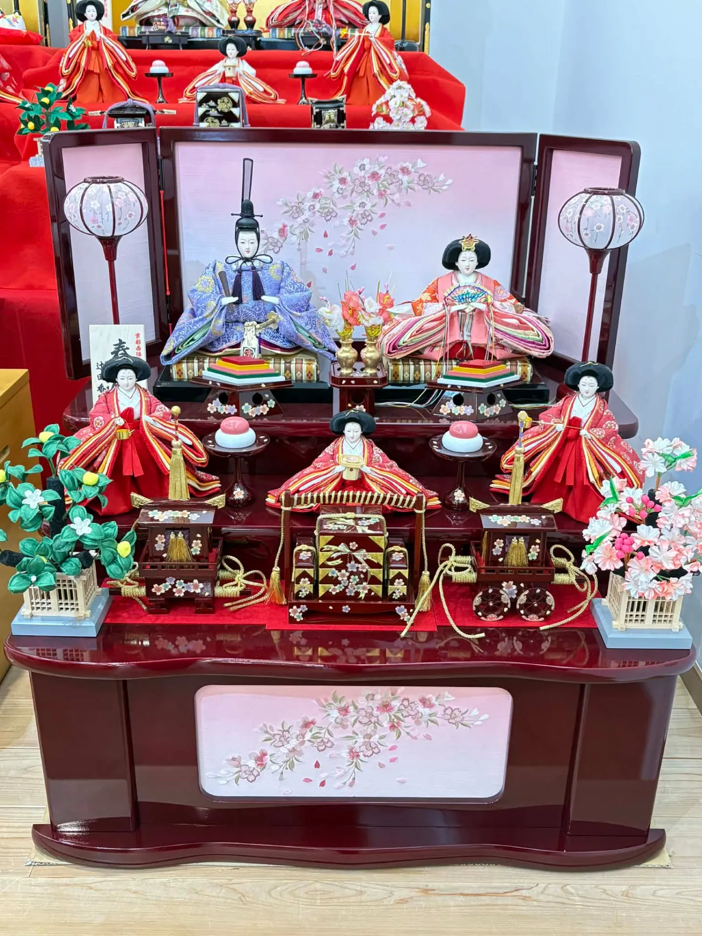 かつては紙や草で作った簡素な人形を川に流し、厄災を遠ざける風習が主流でしたが、次第に人形が豪華になり、家に飾ることで子供の成長や幸福を願う行事へと変化しました。現代では、スガ人形店の三段五人飾りのように、伝統美と現代の生活に合った飾り方が親しまれています。