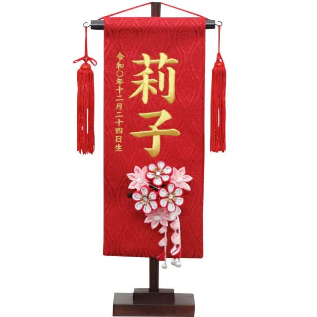 祝い飾りには、雛人形そのものの種類だけでなく、名前旗や簪(かんざし)などの小物をプラスすることで、より個性的なお祝いが可能です。特に名前旗は、お子様だけの「世界に一つだけの飾り」として人気が高まっています。