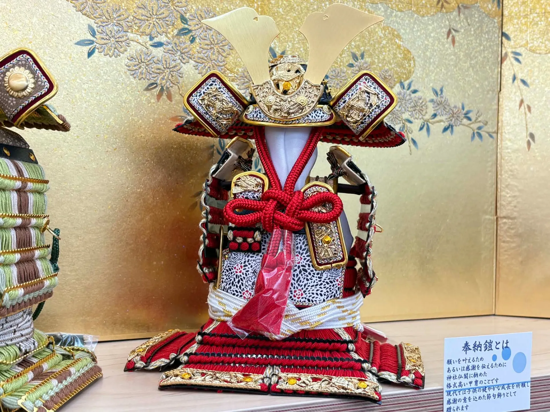 奉納鎧は、ただの装飾品ではなく、願いを叶えるためや感謝の意を込めて神社仏閣に納められた格式高い甲冑です。端午の節句に奉納鎧を模した五月人形を飾ることで、子どもの健康や成長を祈願し、家族の幸福を願う日本古来の精神が受け継がれます。