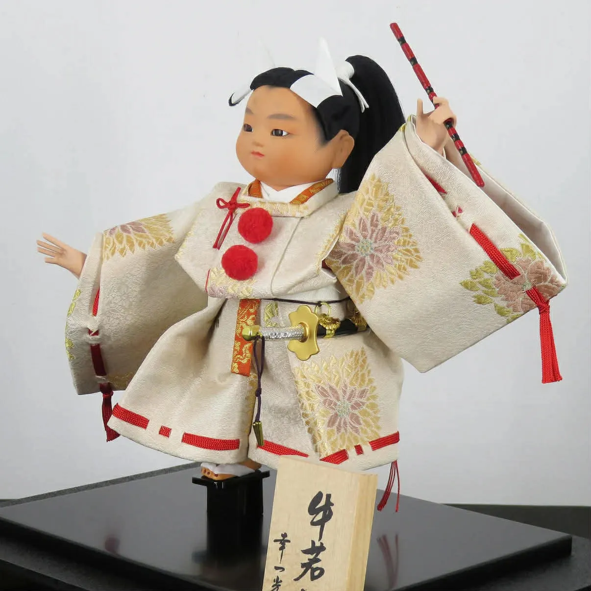 こどもの日の五月人形の中でも、牛若丸(源義経の幼名)をモチーフにした人形は、特に人気があります。牛若丸は幼い頃から鞍馬寺で武芸を磨き、後に弁慶を従えた伝説から、「文武両道」や「たくましく勇気ある成長」、「頭の良さ(知略)」を願う象徴とされています。