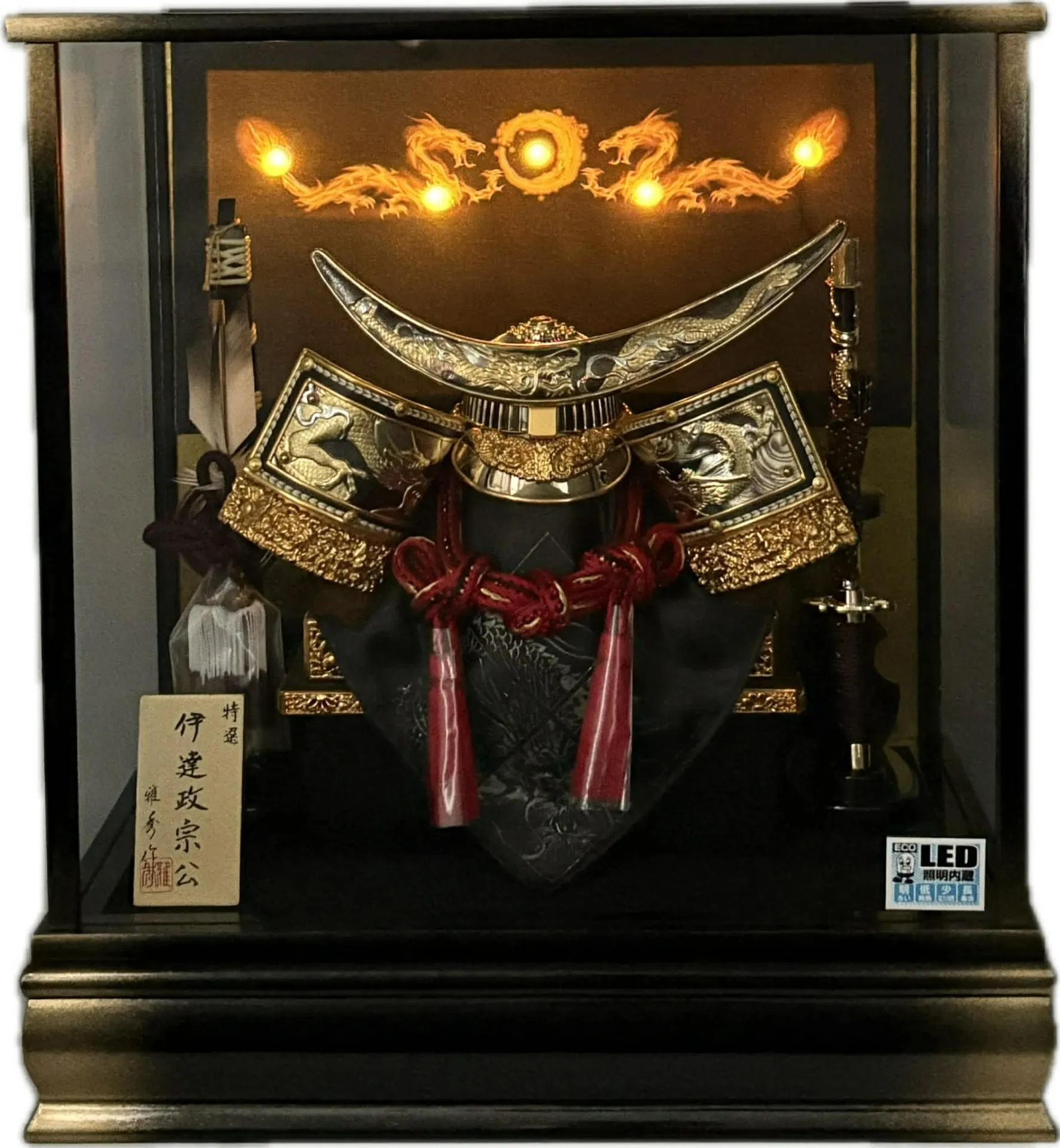 近年はデザイン性の高いケース入り兜も登場し、伝統的な雰囲気とモダンなインテリアの調和を図るご家庭が増えています。ケースの色や台座の素材、内部の装飾パネルなど、細部にこだわった製品が多数展開されています。
