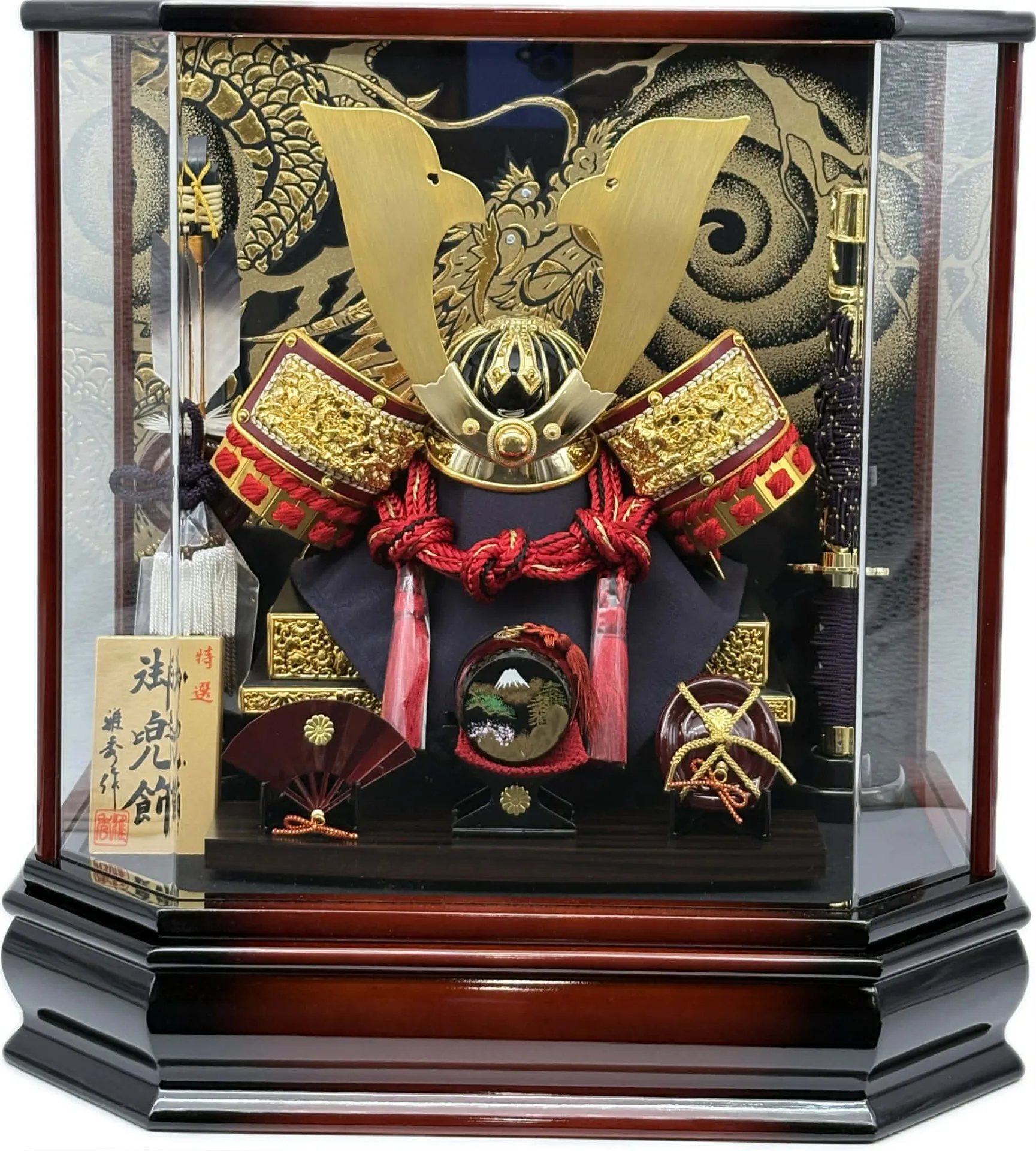 鎧・兜は、災厄や病気から子どもを守るお守りとして飾られてきました。その由来には、武将の強さや勇ましさにあやかり、子どもが困難に立ち向かう力を持つようにという願いが込められています。ガラスケース入り兜は、伝統を守りつつも、手軽に飾れる点で多くの家庭に選ばれています。